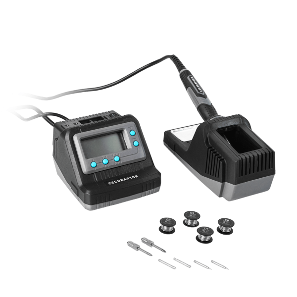 Redescubre el poder de tus manos. Con una potencia de 60 W, con esta estación de soldar puedes hacer realidad tus proyectos profesionales y de DIY en casa, soldando desde PCBs, hasta sistemas de iluminación interior, reparando mandos a distancia, pequeños electrodomésticos con motores pequeños o teléfonos móviles, o incluso piezas de artesanía o joyería; todo lo que puedas imaginar. Con control preciso de la temperatura. La estación de soldar proporciona un rango de temperaturas regulable entre 200 ºC y 450 ºC, lo que permite poder emplearla en multitud de aplicaciones. Calentamiento rápido ready-to-use. Alcanza una temperatura óptima de trabajo en menos de 60 segundos desde su encendido. Diseño ergonómico. El mango ergonómico proporciona un agarre fácil y cómodo, muy agradable al tacto y cómodo de utilizar. Posee una pantalla LCD grande, de fácil visualización, donde podrá configurar todas las variables del dispositivo. Safety use. Presenta un sistema de seguridad automático mediante el cual, tras 30 minutos de inactividad, el soldador entra en modo espera. Con un práctico soporte para apoyar el soldador mientras esté caliente o no se esté utilizando.