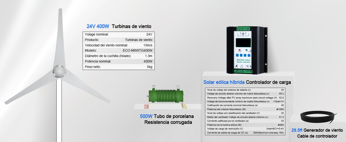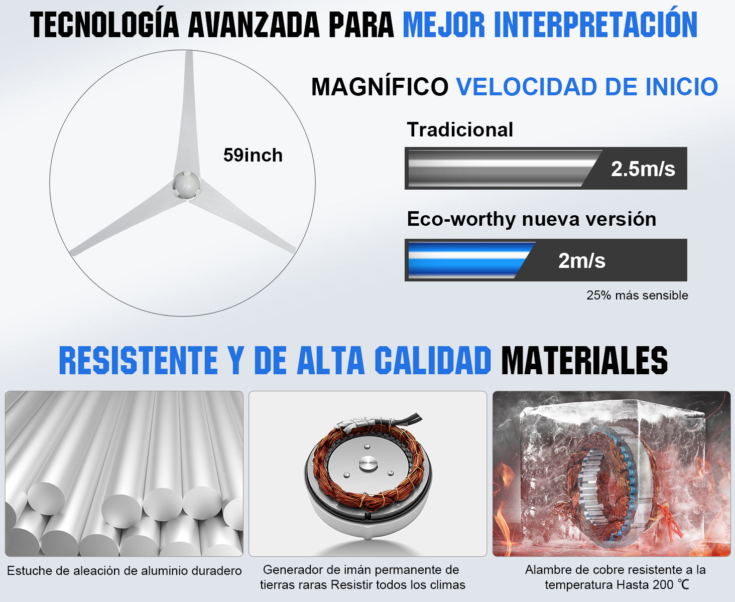 ECO-WORTHY Aerogenerador Eólico 12V/24V 400W con Híbrido Regulador 40A