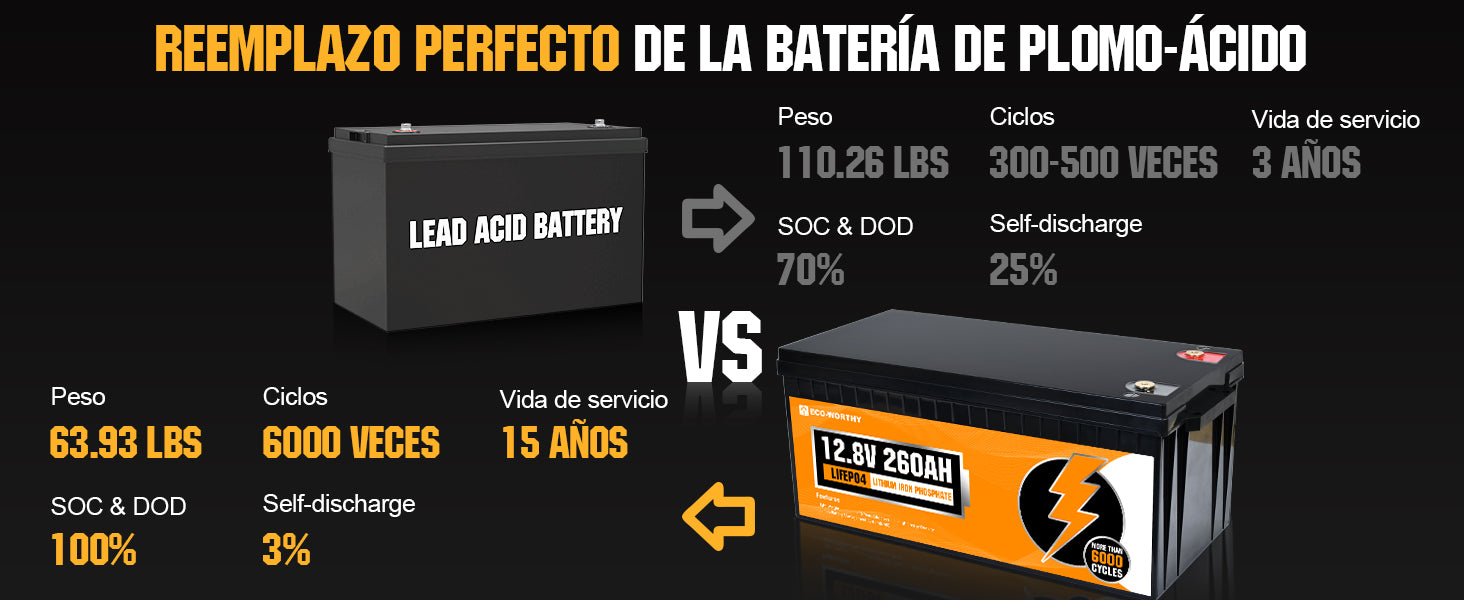 La batería litio ECO-WORTHY ofrecen una excelente calidad precio y un magnífico rendimiento, ideal porvehículos recreativos, almacenamiento solar, barcos, buscadores de peces, ruedas eléctricas, scooters, industria, senderismo, camping, fuente de alimentación de respaldo, etc. Este tipo de batería permite descargas profundas sin alterar su vida útil a diferencias de los otros tipos de baterías, como por ejemplo las de ácido plomo, ya que tiene más del doble en capacidad utilizable y más de 8veces de ciclo de vida de las tecnologías AGM.