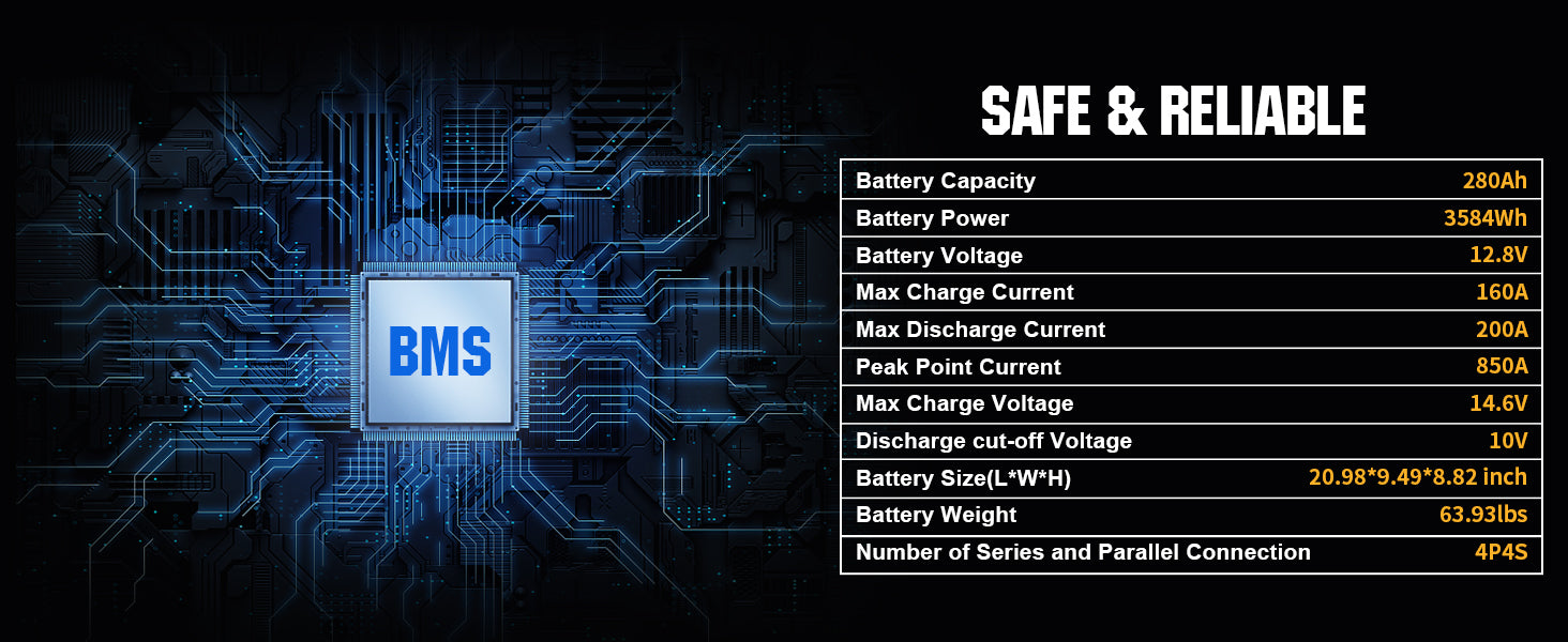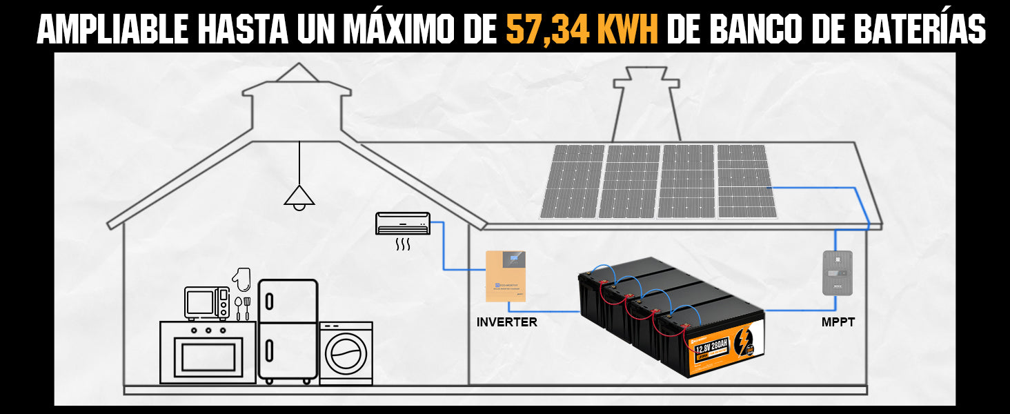ECO-WORTHY Batería Litio LiFePO4 12V 280Ah