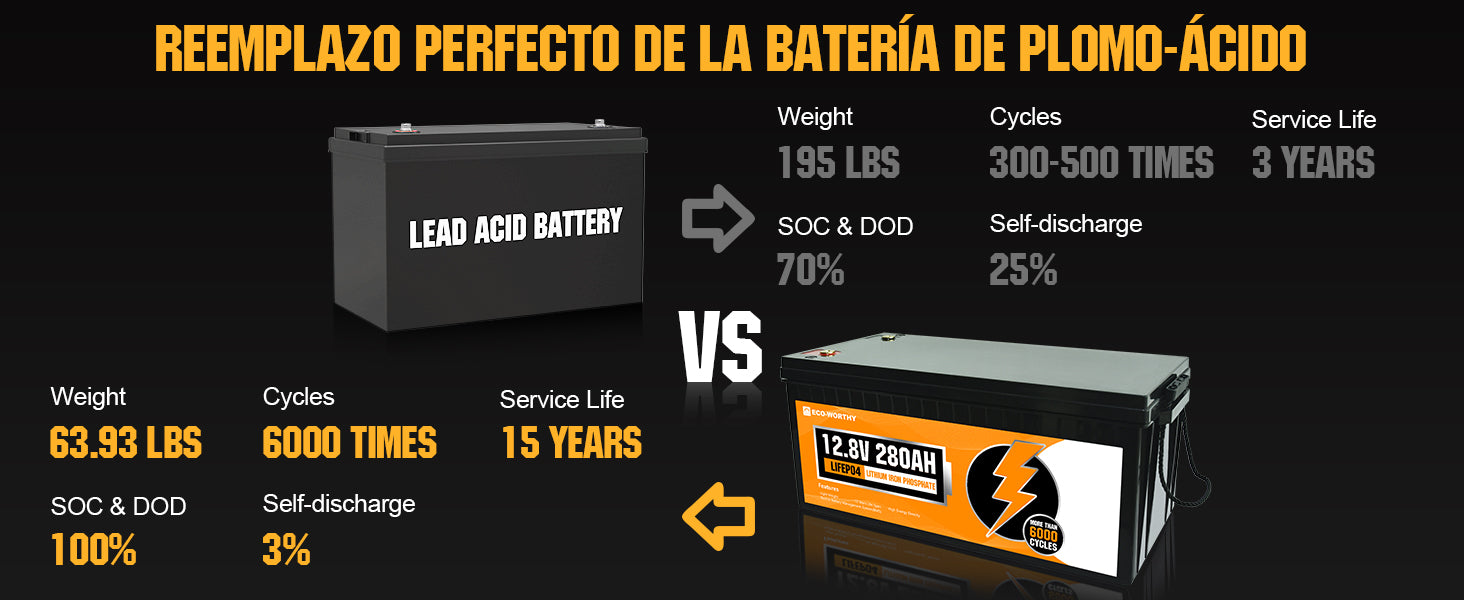 La batería litio ECO-WORTHY ofrecen una excelente calidad precio y un magnífico rendimiento, ideal porvehículos recreativos, almacenamiento solar, barcos, buscadores de peces, ruedas eléctricas, scooters, industria, senderismo, camping, fuente de alimentación de respaldo, etc. Este tipo de batería permite descargas profundas sin alterar su vida útil a diferencias de los otros tipos de baterías, como por ejemplo las de ácido plomo, ya que tiene más del doble en capacidad utilizable y más de 8veces de ciclo de vida de las tecnologías AGM.