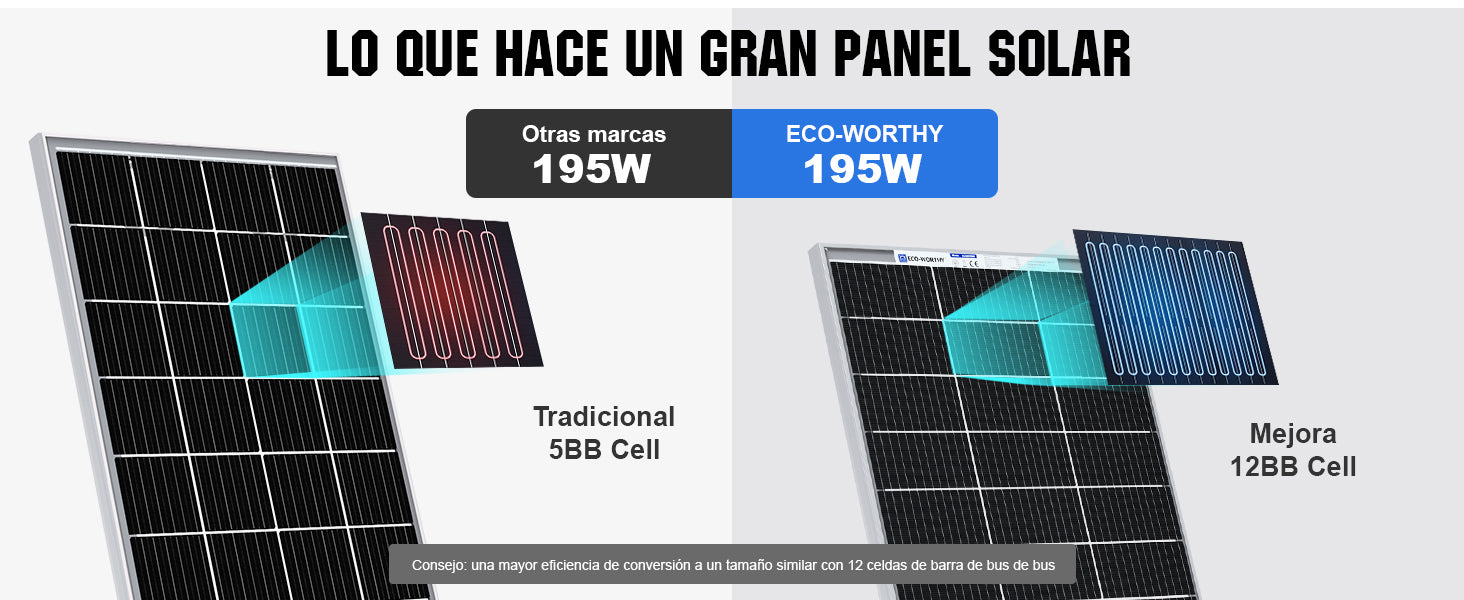 ECO-WORTHY Bifacial 195W 12V Panel Solar Monocristalino