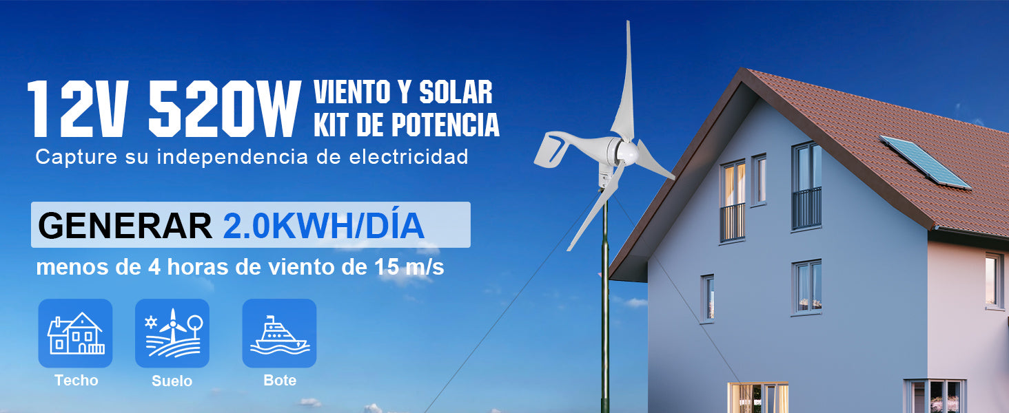 ECO-WORTHY Kit Híbrido Solar Eólico 520W 12V (Eólico 400W+PV 1x120W) con Inversor 600W+Batería de Litio 0.6kWh
