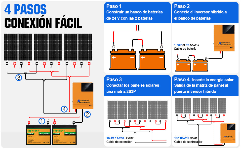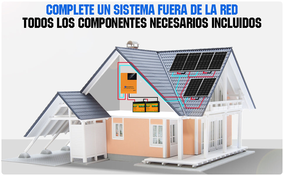 Con Batería Litio LiFePO4 de ECO-WORTHY con más de 3000 ciclos con profundidades de descarga del 95%, paneles solares con garantía de 25 años.