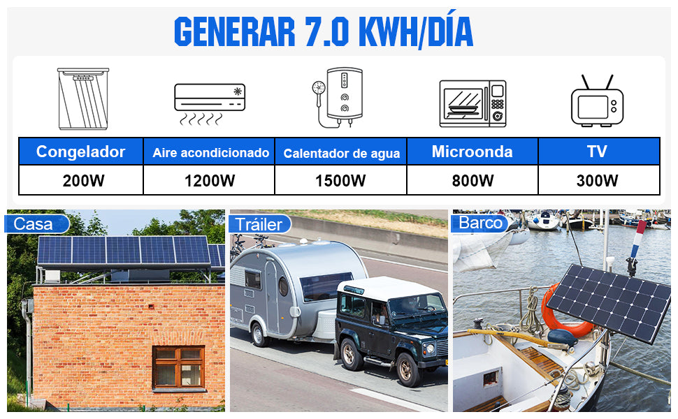 1700W kit: 5100Wh/dia en invierno y 11900Wh/dia en verano.