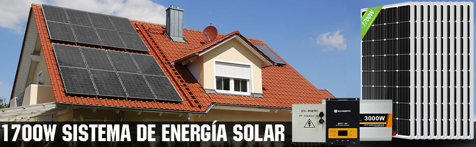 Diseñado con componentes de alta calidad y primeras marcas, el ECO-WORTHY Kit Solar Aislada de 1700W te proporciona energía suficiente para cubrir tus necesidades de consumo.