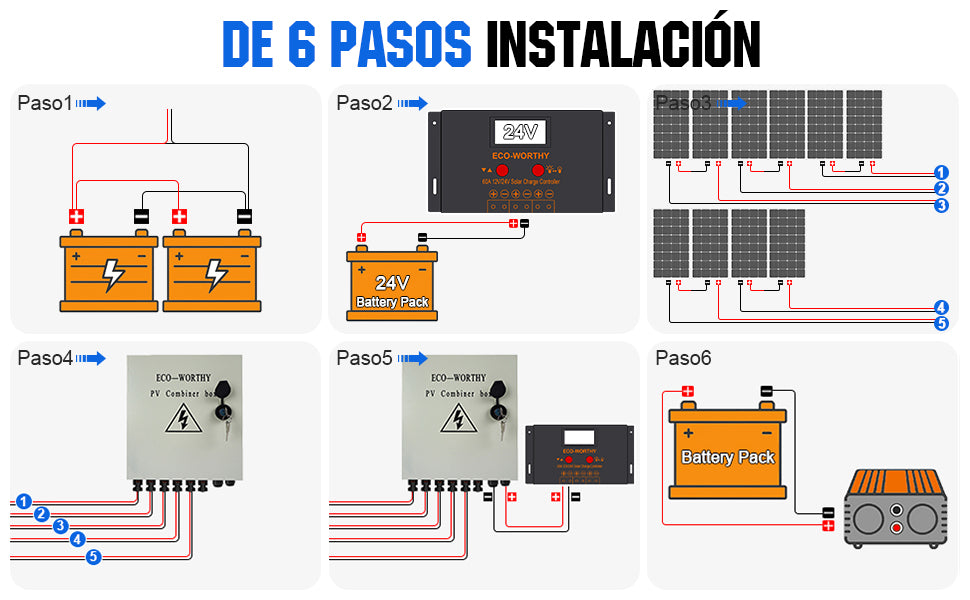 Con Batería Litio LiFePO4 de ECO-WORTHY con más de 3000 ciclos con profundidades de descarga del 95%, paneles solares con garantía de 25 años.