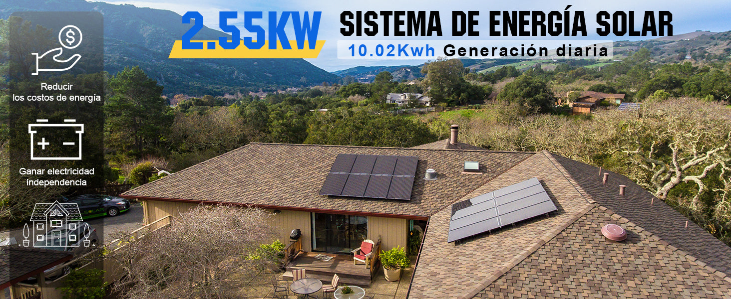 Diseñado con componentes de alta calidad y primeras marcas, el ECO-WORTHY Kit Solar Aislada de 2550W te proporciona energía suficiente para cubrir tus necesidades de consumo.