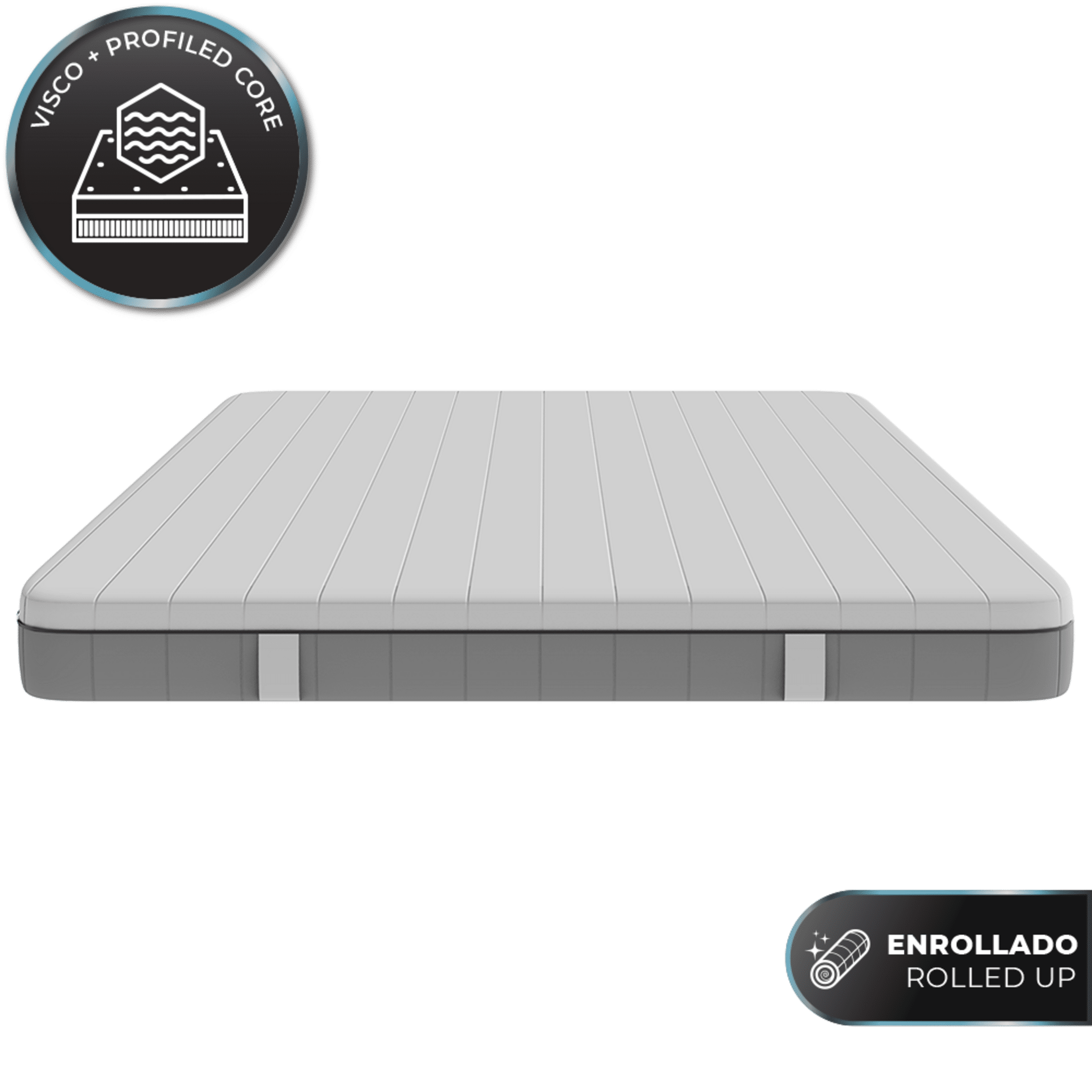Colchón viscoelástico y enfundable de 21 cm de altura que combina 3 capas para una firmeza media-alta, núcleo perfilado de espuma HRC+ y tecnologías MorphoAdapt, SoftFresh & EasyClean.