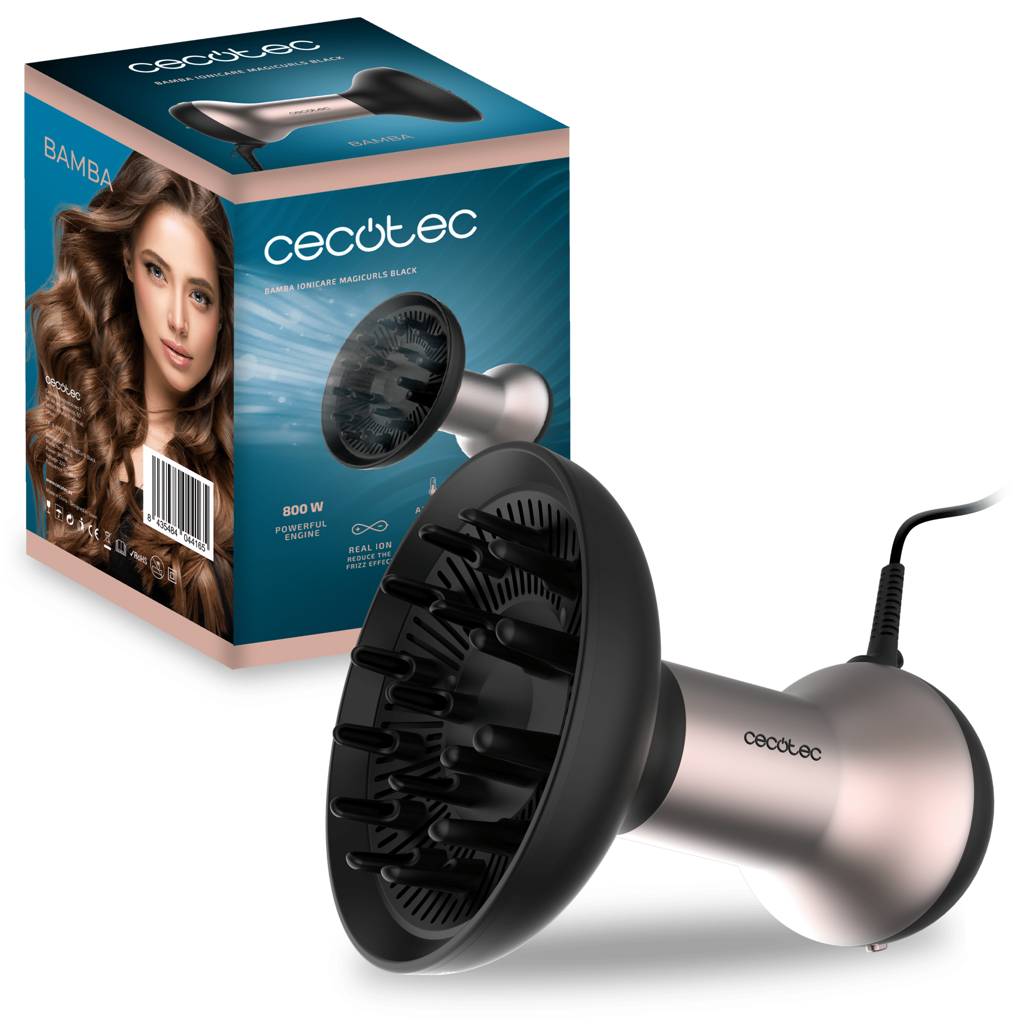 Ionicare MagiCurls Black Secador difusor de pelo con 3 temperaturas y 2 velocidades, 17 púas, 800 W y tecnología de iones