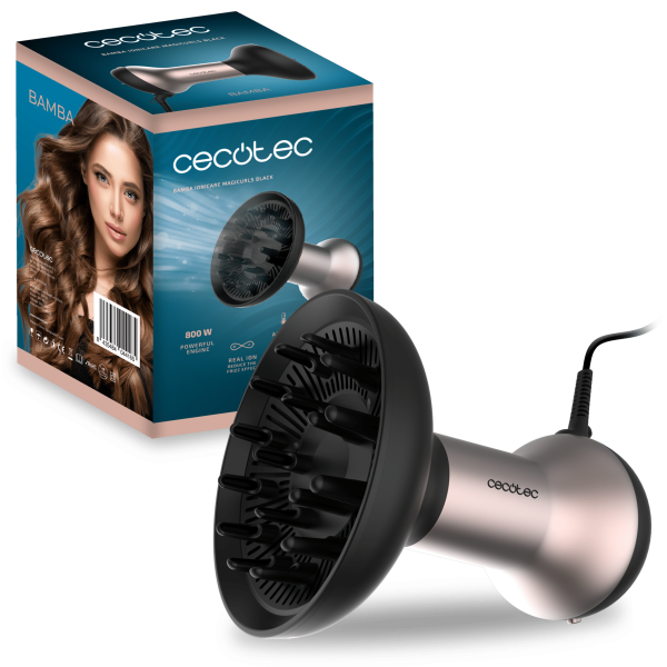 Potente motor: 800 W de potencia que facilitan el secado del pelo rizado. Adiós encrespamiento: su Ion Real elimina los iones positivos del cabello, consiguiendo un resultado libre de frizz y de electricidad estática. Velocidad y temperatura regulables: el secador dispone de 3 temperaturas y 2 velocidades que se adaptan a las necesidades de tus peinados. Seca y riza: el difusor de 17 púas riza y seca el cabello de manera controlada. Cable giratorio 360º: sécate el pelo con libertad de movimiento gracias a su cable de 1,6 metros de longitud. Diseño ergonómico: su diseño facilita el agarre del producto durante el secado y rizado del cabello.