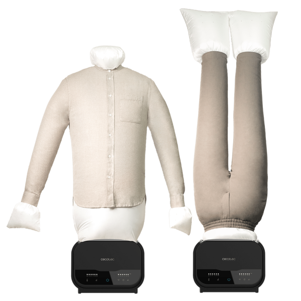 Seca y ayuda a planchar tus prendas de forma automática en cuestión de minutos. 2 en 1: incluye accesorio tanto para parte de arriba como parte de abajo. Válido para todo tipo de prendas. Gran potencia de 1200 W para planchar y secar tu ropa de forma rápida. Panel de control táctil. Temporizador entre 15 y 180 minutos. Temperatura regulable entre 50 y 70 grados. Dos velocidades: Low / High para adaptarse a las necesidades de cada momento. Incluye 4 pinzas con peso que puedas ceñir cada prenda al maniquí para conseguir resultados perfectos.