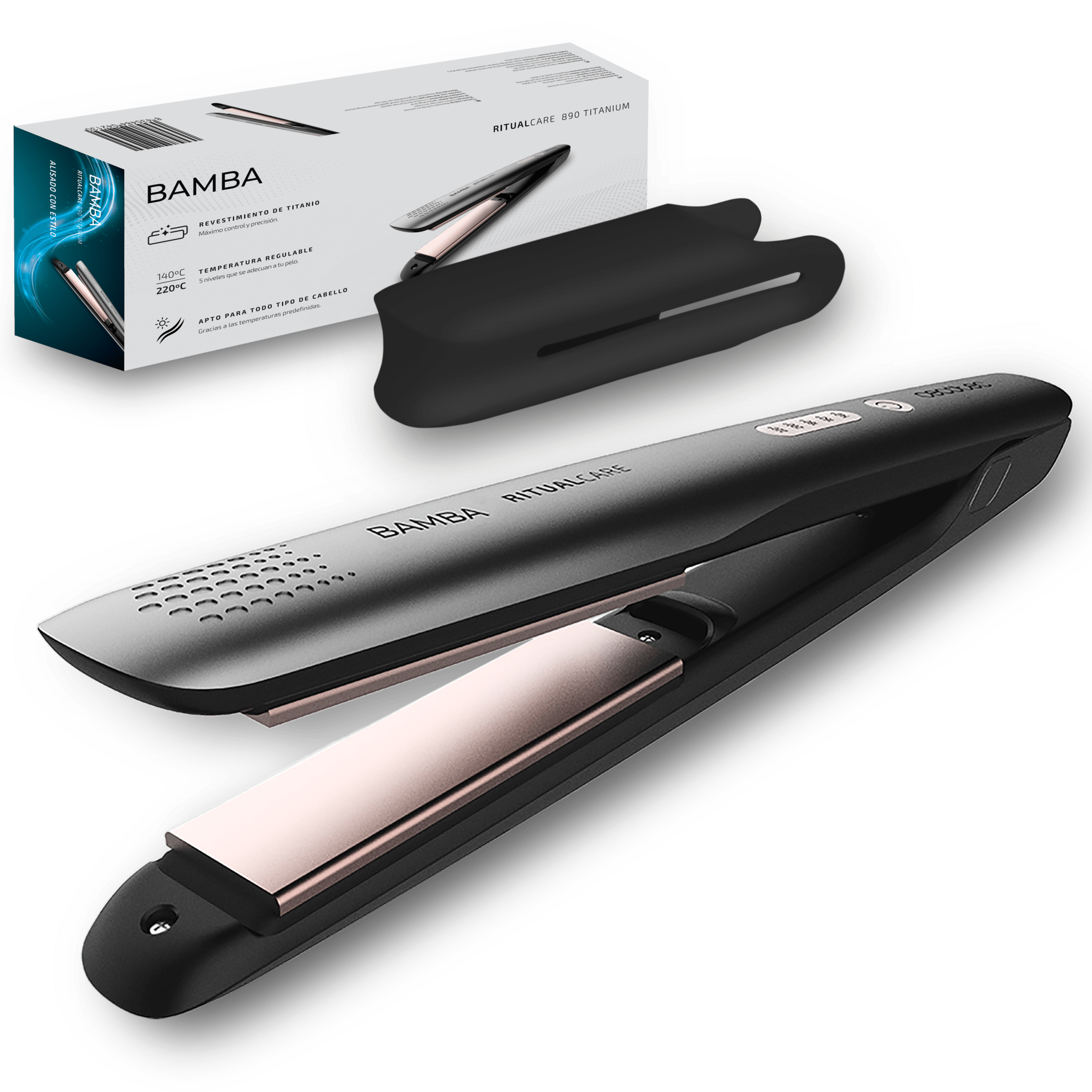 RitualCare 890 Titanium, Plancha de pelo con placas de titanio, ajuste de temperatura 140-200 ºC,apagado automático, 3m de cable,protector de placas de silicona