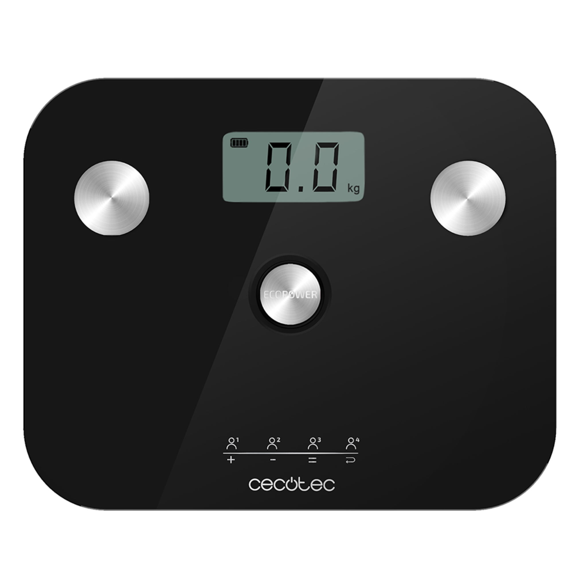 Sin pilas. Gracias al pulsador EcoPower, conseguimos generar energía suficiente para que la báscula funcione perfectamente y de forma constante durante la medición sin necesidad de usar pilas. Eco-Friendly Technology. Gracias al pulsador EcoPower, creamos energía cinética, que se transforma en energía eléctrica de forma simple y automática, consiguiendo una báscula ecológica y más respetuosa con el medioambiente al mismo tiempo que eliminamos las pilas. TenBIA: método de medición de Impedancia Bioeléctrica (BIA) con un análisis corporal completo, con medición precisa de 6 parámetros básicos: peso, grasa corporal, masa muscular, hueso, agua e índice de masa corporal (BMI). UserClever: memoriza los parámetros de 4 usuarios, para que puedas recordar la anterior medición y llevar el control de tu evolución. Four Precision. Gracias a sus 4 sensores de alta precisión, permite unas mediciones más precisas y exactas, de forma estable. Amplio rango de medición, desde los 8 kg hasta los 180 kg con graduación de 100 g que aumenta su fiabilidad durante las mediciones. Multifunción Easy Usability. Fácil usabilidad gracias a la función de autoapagado, de encendido sencillo e inmediato al presionar el pulsador EcoPower e indicador de sobrecarga cuando el peso es superior al máximo. Diseño extraplano de cristal templado de alta seguridad de 5 mm de ancho para asegurar que es segura aún produciéndose rotura accidental. Fácil y cómoda lectura de los resultados en su pantalla LCD y de gran tamaño para que sea sencillo leer las mediciones en cada uso. Dispone de función de reinicio automático (a cero) para que puedas volver a pesarte las veces que necesites. SafeGrip. Incluye cuatro patas de poliuretano termoplástico que facilitan el agarre al suelo proporcionado una gran seguridad, incluso en el suelo húmedo. Desconexión automática tras segundos de inactividad, para que no tengas que preocuparte de encender o apagar la báscula en cada uso. Botón para la conversión entre Kg y Lb, para que sea sencilla la conversión de peso.