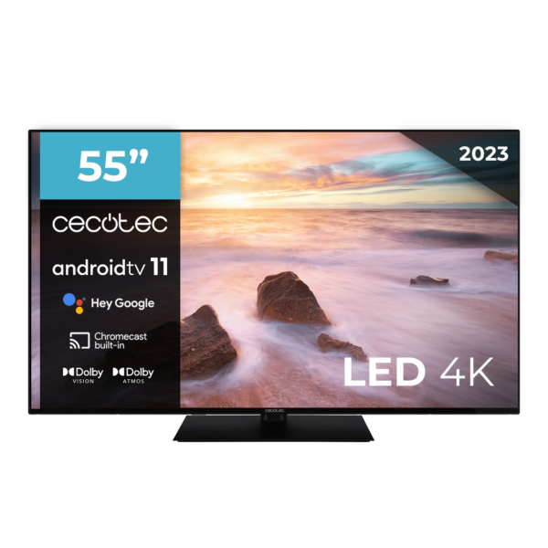 TV Cecotec A2Z Series ALU20055ZS Televisión LED 55” con resolución 4K UHD, sistema operativo Android TV 11, Chromecast, HDR10+, Google Voice Assistant, clase E, con peana central.