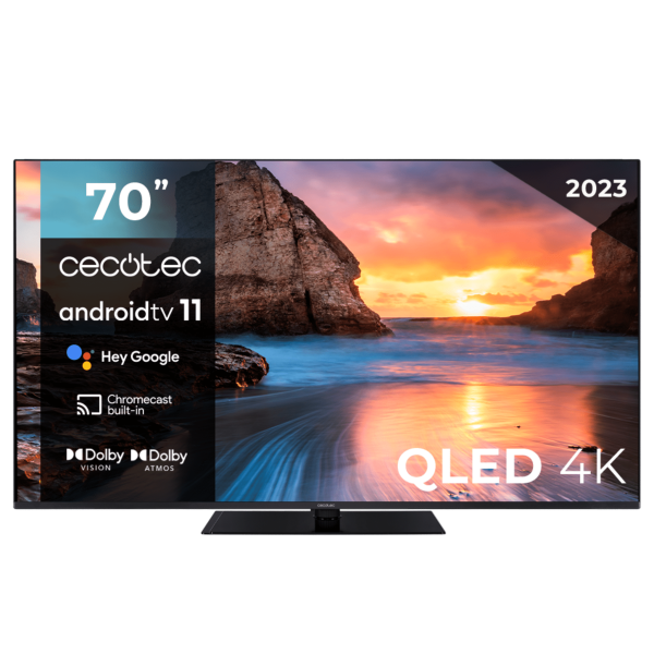 Android TV.V.11: la mejor experiencia de uso con una gran colección de aplicaciones. Chromecast integrado para enviar contenido de forma sencilla y rápida. 4K UHD: imágenes ultra nítidas y con alta definición incluso en detalles. Diseño sin marcos: minimiza el margen entre marcos e imagen para mejorar la experiencia de visión. MEMC: añade fotogramas de compensación para generar imágenes más fluidas y nítidas. Dolby Vision: optimiza cada fotograma para mostrar imágenes más puras y reales. Dolby Atmos: sonido envolvente multidimensional de 360º para escuchar el sonido de forma real. Subwoofer: sistema de altavoces que mejora los bajos y crea una experiencia de audio superior. HDMI 2.1 48gbs 48gbs: permite altas frecuencias y resoluciones sin dañar la imagen de origen. Multidimensional sound&video: mejora el brillo, la definición y el movimiento de cada imagen. Baja latencia para Gaming: configura la latencia de forma automática para mejorar la experiencia de juego de tu consola. Pantalla 10 Bits: reproduce más de 1000 millones de colores. Eye Safe: minimiza la emisión de luz azul para proteger los ojos. Peana central rotativa. Wide Color Gamut 96%. La mayor escala cromática de color para que el cliente pueda ver las imágenes más puras con 1,07 millones de colores.