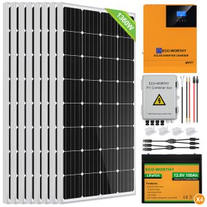 ECO-WORTHY Kit Solar Aislada 480W 12V (4x120W) con Inversor 1.1kW+Batería de Litio 1.2kWh