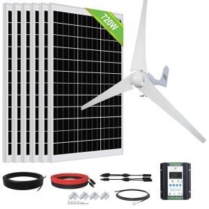 ECO-WORTHY Kit Híbrido Solar Eólico 1120W 24V (Eólico 400W+PV 6x120W) con Inversor 1.5kW+Batería de Litio 2.4kWh
