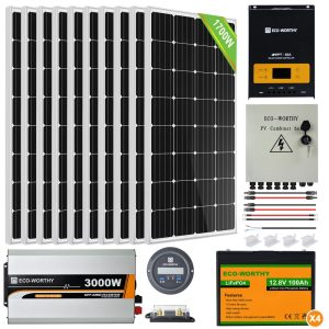 ECO-WORTHY Kit Solar Aislada 1700W 24V (10x170W) con Inversor 3kW+Batería de Litio 4.8kWh