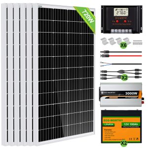 ECO-WORTHY Kit Solar Aislada 720W 24V (6x120W) con Inversor 3kW+Batería de Litio 2.4kWh
