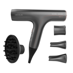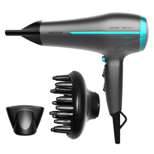 Bamba IoniCare 5500 PowerStyle, Secador de pelo Ionico de diseño con motor AC, de gran caudal de aire, con iones reales, sistema Perfect Colour, con difusor y accesorios profesionales (Gris)