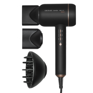 Iónico Bamba IoniCare 5300 Maxi Aura Black. Secador de Pelo con 2200 W, Motor AC, Función de Aire frío, Cable 1.8 m, Incluye Difusor y Concentrador, Negro