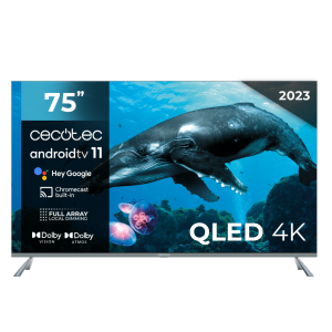 TV QLED V3+ series VQU30075+ Televisión QLED de gran pulgada con 75″ con resolución 4K UHD y Android TV 11, Full Array Local Dimming, 120 Hz, Dolby Vision & Atmos, Wide Colour Gammut, HDR10, HDM 2.1, USB 3.0, CORTEX A55, Google Voice Assitant y Chromecast.